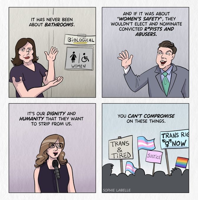 First, that trans rights are uniquely divisive. This ignores the historical reality that every civil rights advancement was initially portrayed as "too divisive" or "too soon." The same arguments used against trans rights today were used against gay marriage yesterday, and racial integration before that.